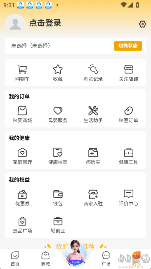 咪婴伴侣是一款专为孕产及育儿阶段设计的辅助应用,首次使用时,你需要选择身份状态,应用提供从备孕到育儿的全面知识指导和实用工具。连续7日签到可以获得积分奖励,平台还设有商城服务及广场交流板块,供父母分享经验、获取支持,更好地呵护宝宝成长。