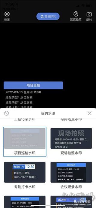 不同项目类型对应专属模板,需在“水印类型”中正确选择场景(如施工、巡检等)方可显示对应选项,请核对当前选择的模式是否匹配。