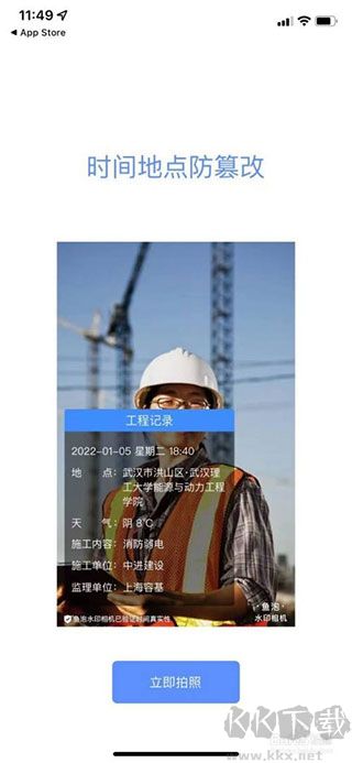 2、点击生成具有准确数字的水印照片,水印信息丰富,时间和地点不可篡改,符合工程工作中真实性和准确性的特点