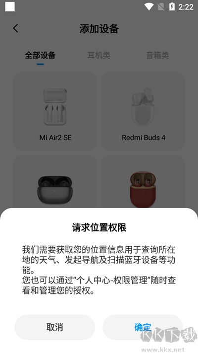 2、然后进入到添加设备的页面中会弹出一个要开启位置的提示点击确定;