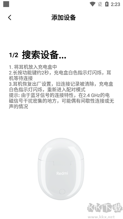3、最后点击过后等搜索到设备后连接;