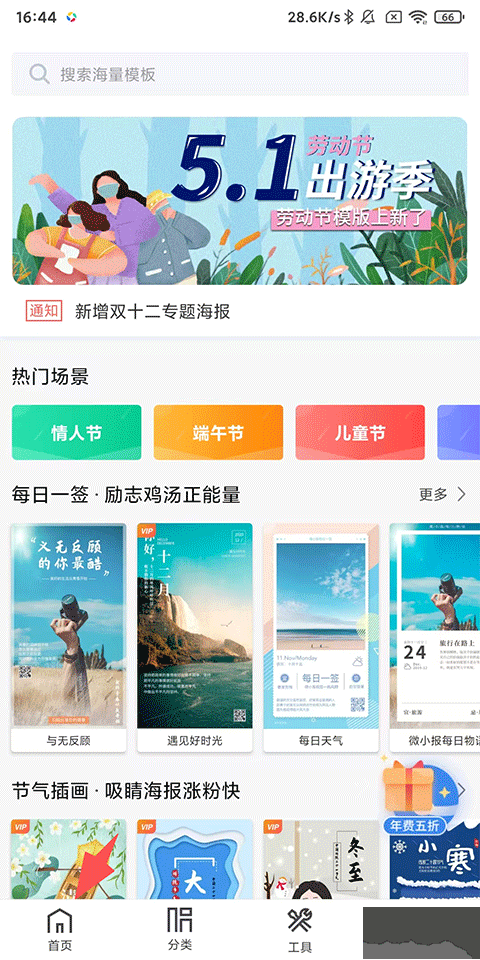 1、打开微商海报APP并登录账号,在首页选择需要的海报模板类型;