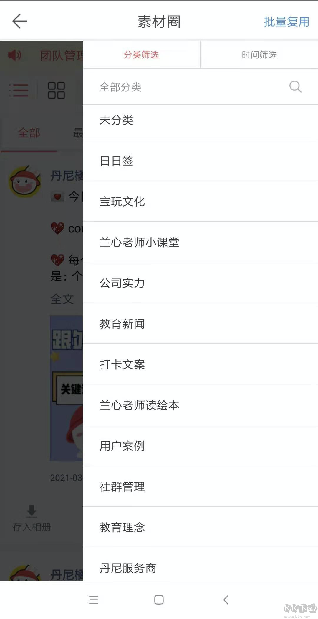 4、完成后,你就能在团队 【素材圈】 里看到日日签、公司实力、用户案例等丰富素材!