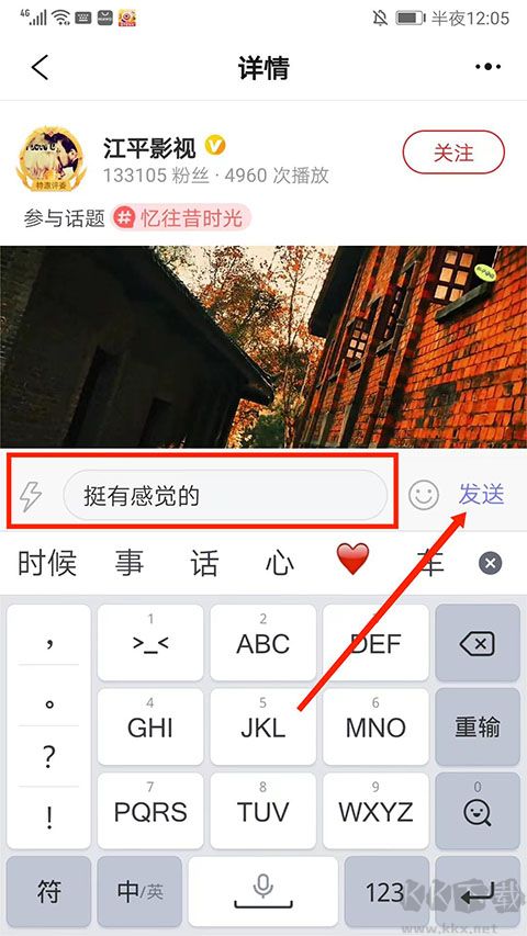 3、在编辑框里输入评论内容,之后点击右边 “发送” 选项。