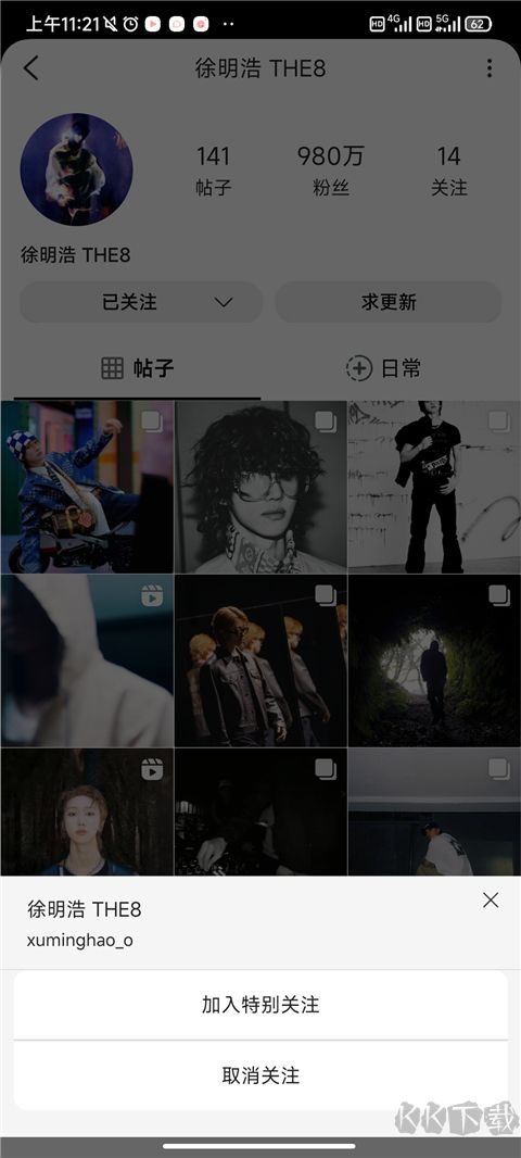 方法1:在首页的关注标签页,找到你想特别关注的博主发布的帖子,点击帖子右上角的三个点图标,然后在弹出的选项中点击加入特关