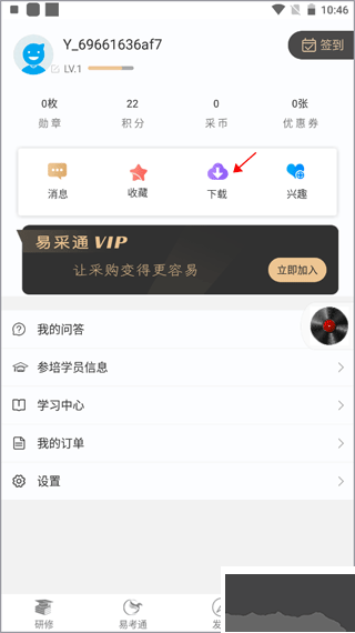 1、在易采通的 “我的” 功能板块中找到并点击 “下载” 相关选项。