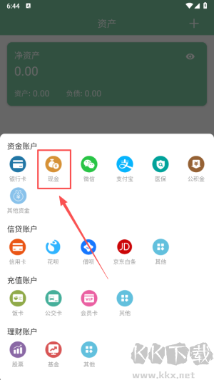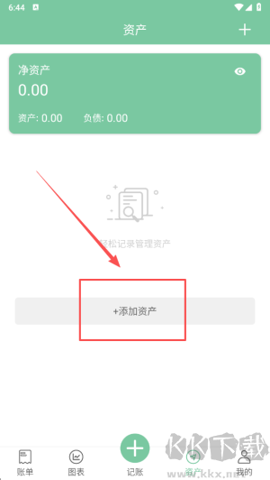 2、选择"添加资产"按钮,以启动新增资产账户的流程。