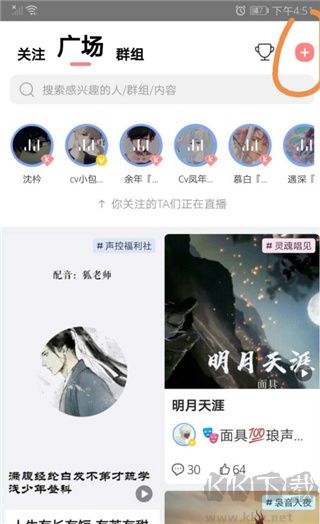 1、打开应用进入主页面,点击右上方 + 号。