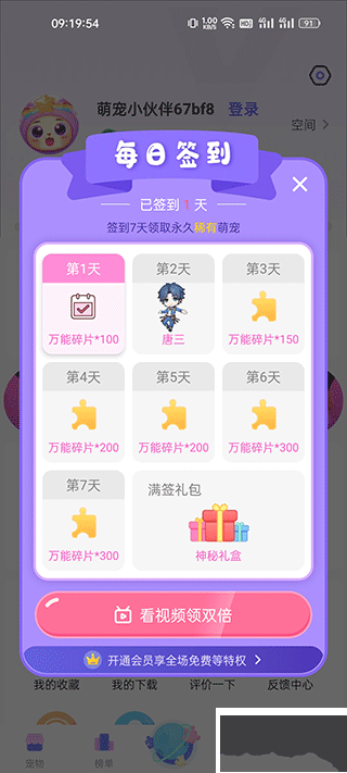 2、在每日打卡页面,还能领取通用碎片和唐三角色。