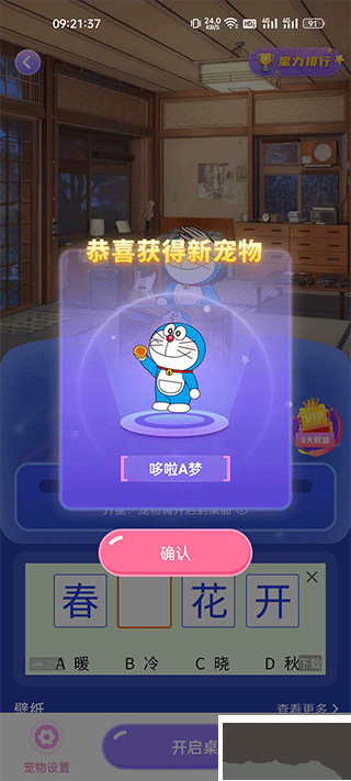 3、在此处我们选择已获取的新宠物哆啦 A 梦。