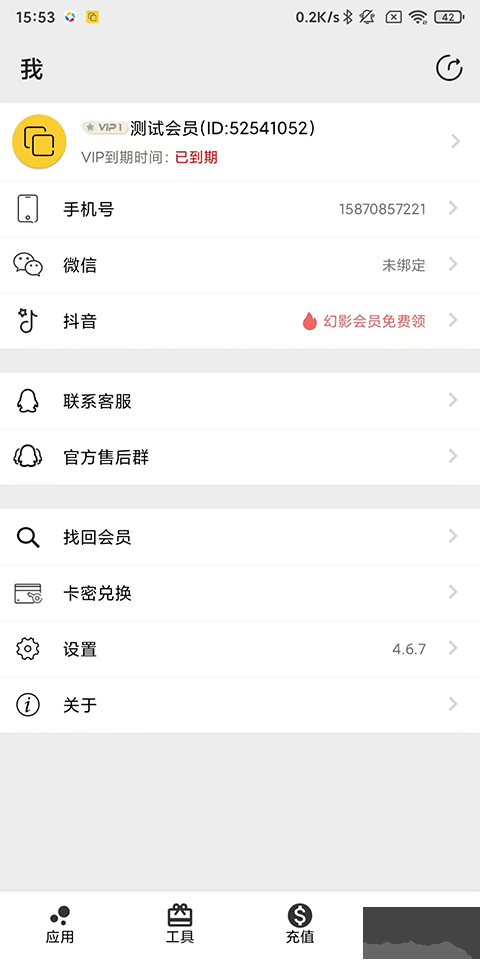 4、最后回到我的页面,通过绑定抖音号、充值会员、卡密兑换来获得VIP会员开启更多玩法权限。