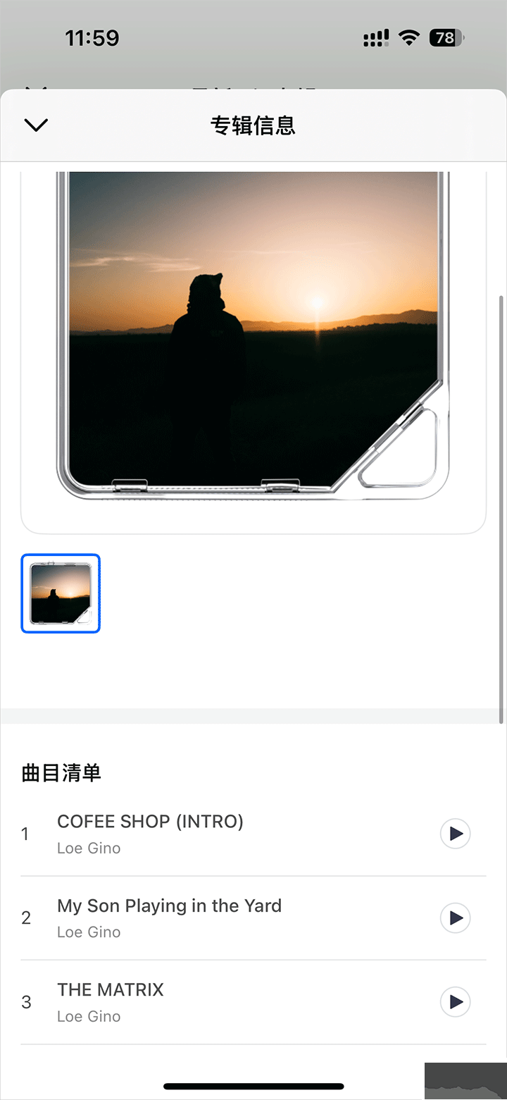 3、选中喜欢的专辑后,页面会显示完整的曲目列表,如果试听或预览感觉不错,就能直接在线购买并下载。