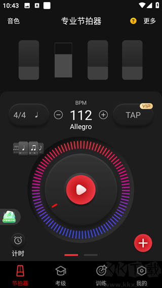 节拍器app是一款专业的节拍器和调音器软件,可以辅助用户进行日常乐器节奏练习,还可以作为乐器高阶训练的工具。里面提供多种节拍供选择,支持切换不同音色。软件还具备自动调速功能,可以自行设定节拍增加的时间、速度等参数,实用性很强。需要的朋友快来下载试试吧!