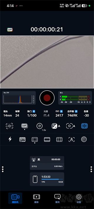 4、根据拍摄环境和个人风格,对亮度、曝光、色温等参数进行微调,调整满意后,点击中间的录制按钮开始拍摄。