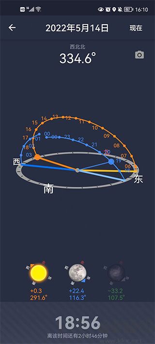 涵盖日出日落时刻、月出月落时刻、晨昏光线、黄金拍摄时段、蓝调拍摄时段、夜间时段、日月方位、日月检索功能。