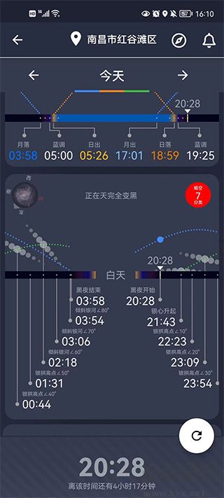 包含主要星体方位、星座分布、行星位置、星云形态、星轨模拟效果、银河方位、银河检索功能、流星雨预测、城市光污染情况。