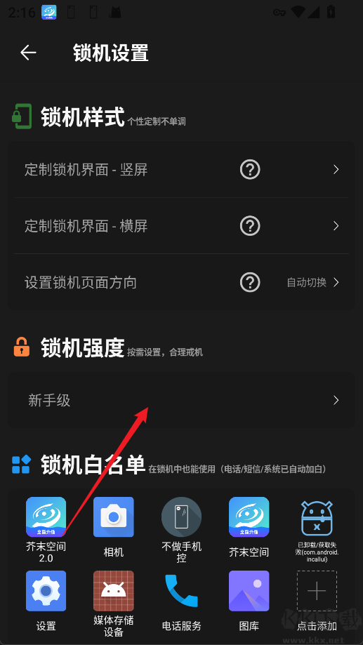 3、在设置页面选择锁机强度
