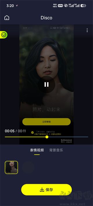 Siliminiapp是一款创新的动图特效软件,可以把静态照片呈现动态效果。提供强大的动态特效,完全能满足视频制作需求,而且不需要付费,操作很方便。只需要选择喜欢的模板、上传照片,就能一键制作动画表情,还能给制作好的照片添加背景音乐。软件实现一键制作、高清保存、随时分享,为你开启充满创意和乐趣的影像新体验。喜欢的朋友快来下载试试吧!