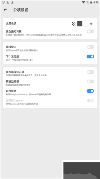 使用者对每个应用进行设置后,能实现根据应用调整 Soc 性能、屏幕亮度等效果。使用该功能需在无障碍设置中开启 “Scene - 场景模式”,并允许 Scene 自动启动且保持在后台运行。