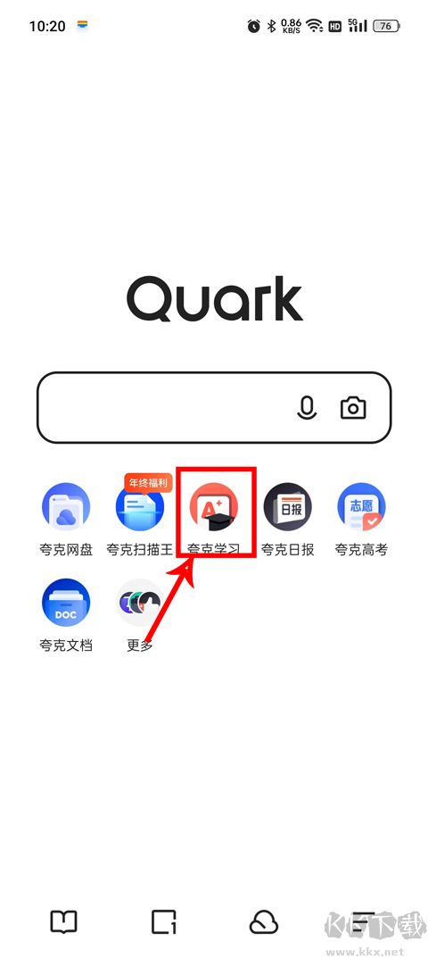 2、在主页面的搜索栏下方有不少实用功能,点击夸克学习进入到夸克学习功能界面。