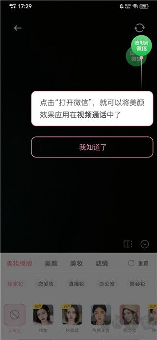 4、完成后,点击右上方的微信图标,跳转到微信后选择一个好用视频通话就可以见到效果了。