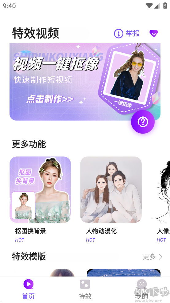 特效视频app是一款视频剪辑制作的视频编辑软件,功能丰富,包含抠图换背景、人物动漫化、海量特效模板等,满足大部分用户的剪辑需求。它操作简单,没有经验的用户也能轻松上手剪辑,制作出属于自己的创意大片。软件还拥有丰富的视频模板,即使没有好创意,也能轻松做出精彩短视频;支持将视频一键分享到朋友圈、抖音、西瓜视频等平台,还可以一键转为GIF动态图。喜欢的朋友快来下载试试吧!