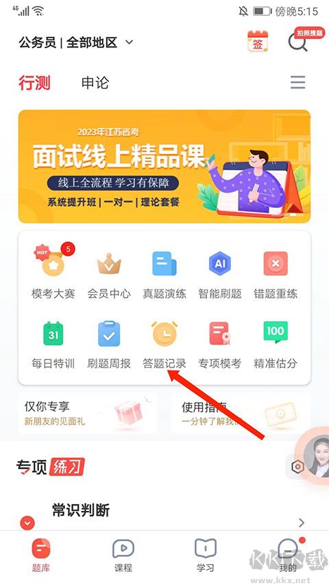 1、打开华图在线 app,找到并点击 “答题记录” 选项。