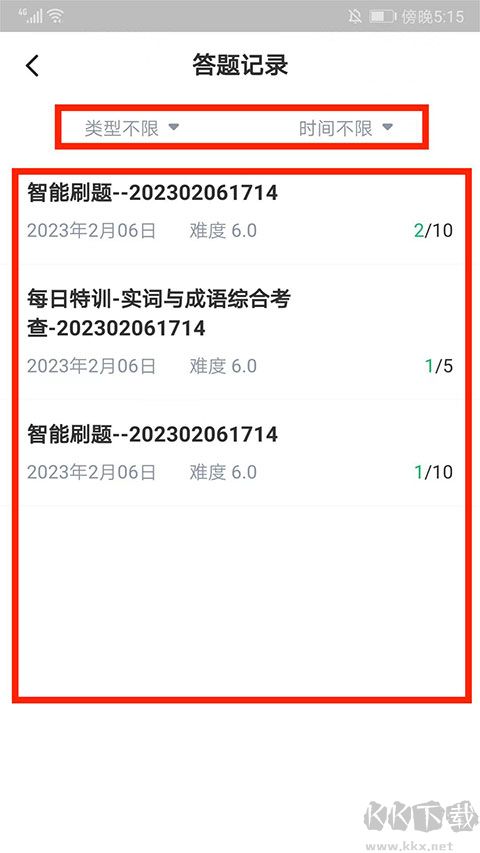 2、进入答题记录页面后,可设置答题的类型和答题时间,然后挑选需要查看的题目内容。