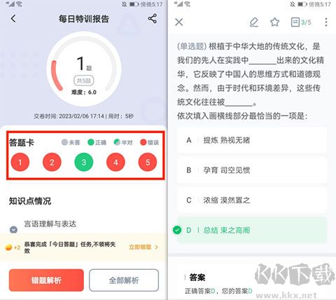 3、进入答题详情页面,点击相应的题号,就能看到做过的题目对应的详细内容了。