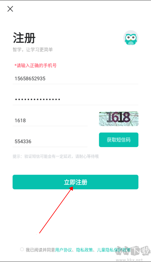 3、输入手机号与密码,选择【立即注册】。