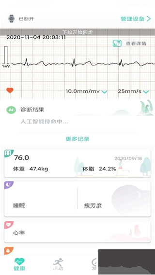 3、在健康板块可以查看各种心电图的历史记录,还支持AI分析,方便用户查看。