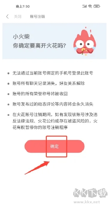 2、跳转至账号注销页面后,仔细阅读相关说明,确认无误后点击(确定)。