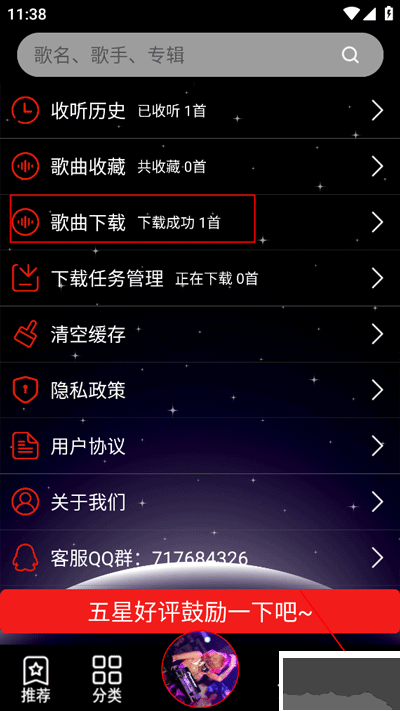 2、支持在线查找或离线下载,海量歌曲免费畅听无限制。
