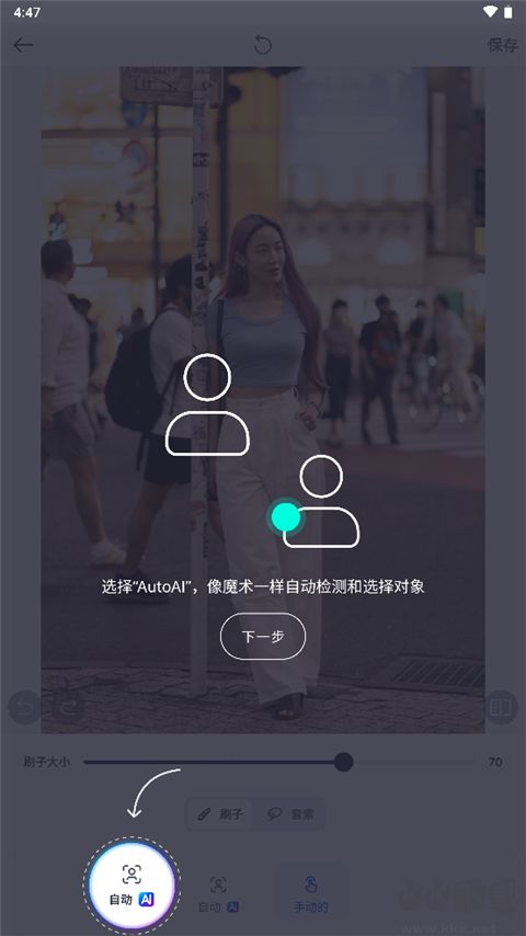 6、点击刷子,使用者可以用笔画手动绘制和选择图像,并使用橡皮擦删除对象。