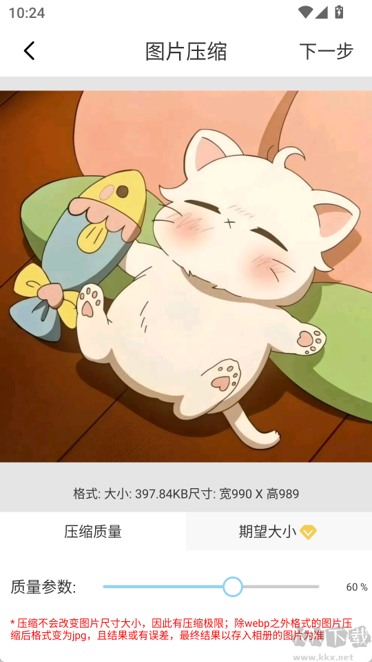 3、可调节画质百分比或指定文件尺寸来掌握压缩效果。