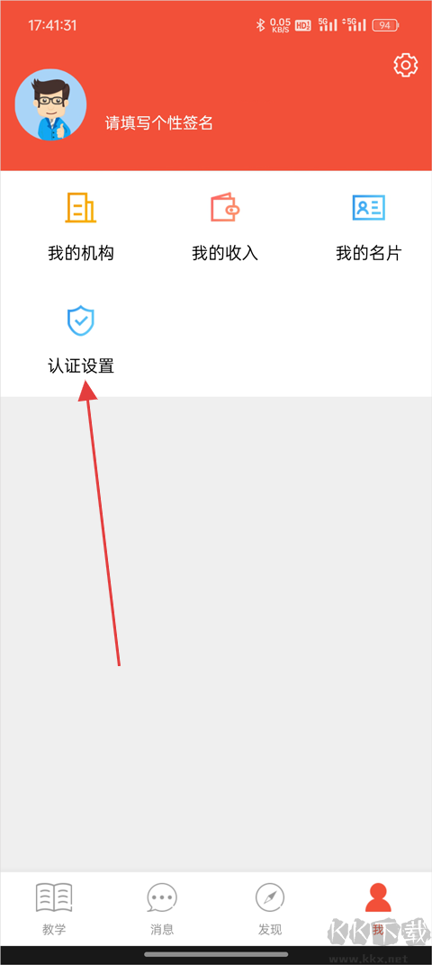 2、在个人主页点选【认证设置】按钮。
