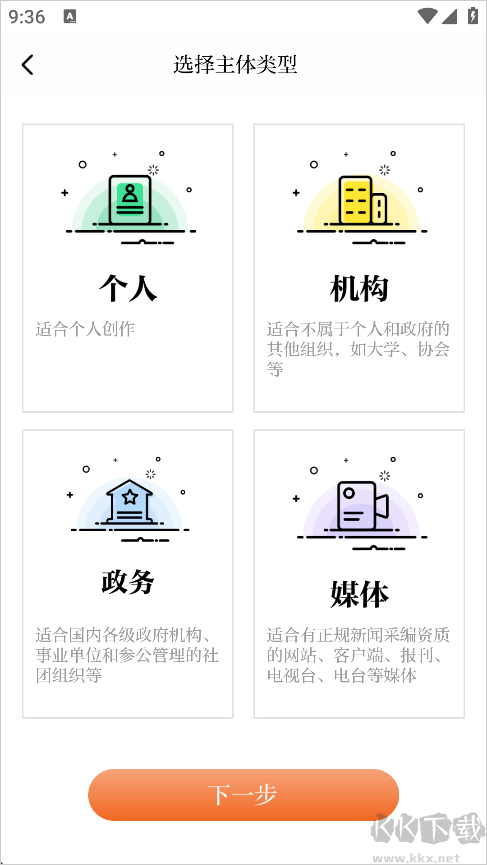 3、应用内设置了四种发布主体类型,大家依据实际情况挑选。