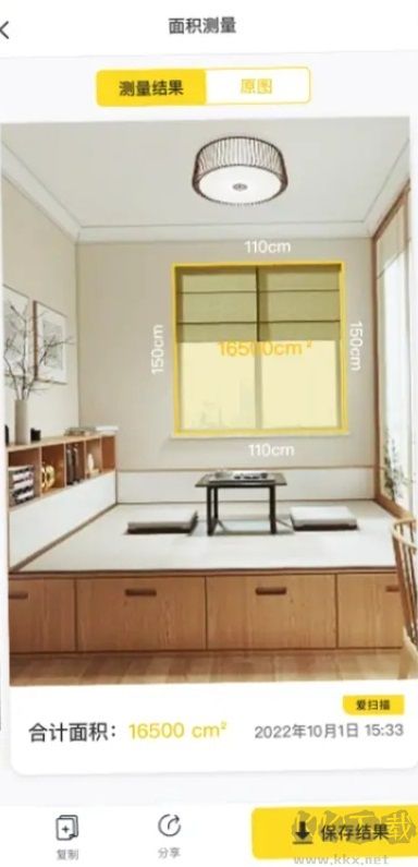 将摄像头对准房屋空间,软件即可自动计算并显示房间的面积;