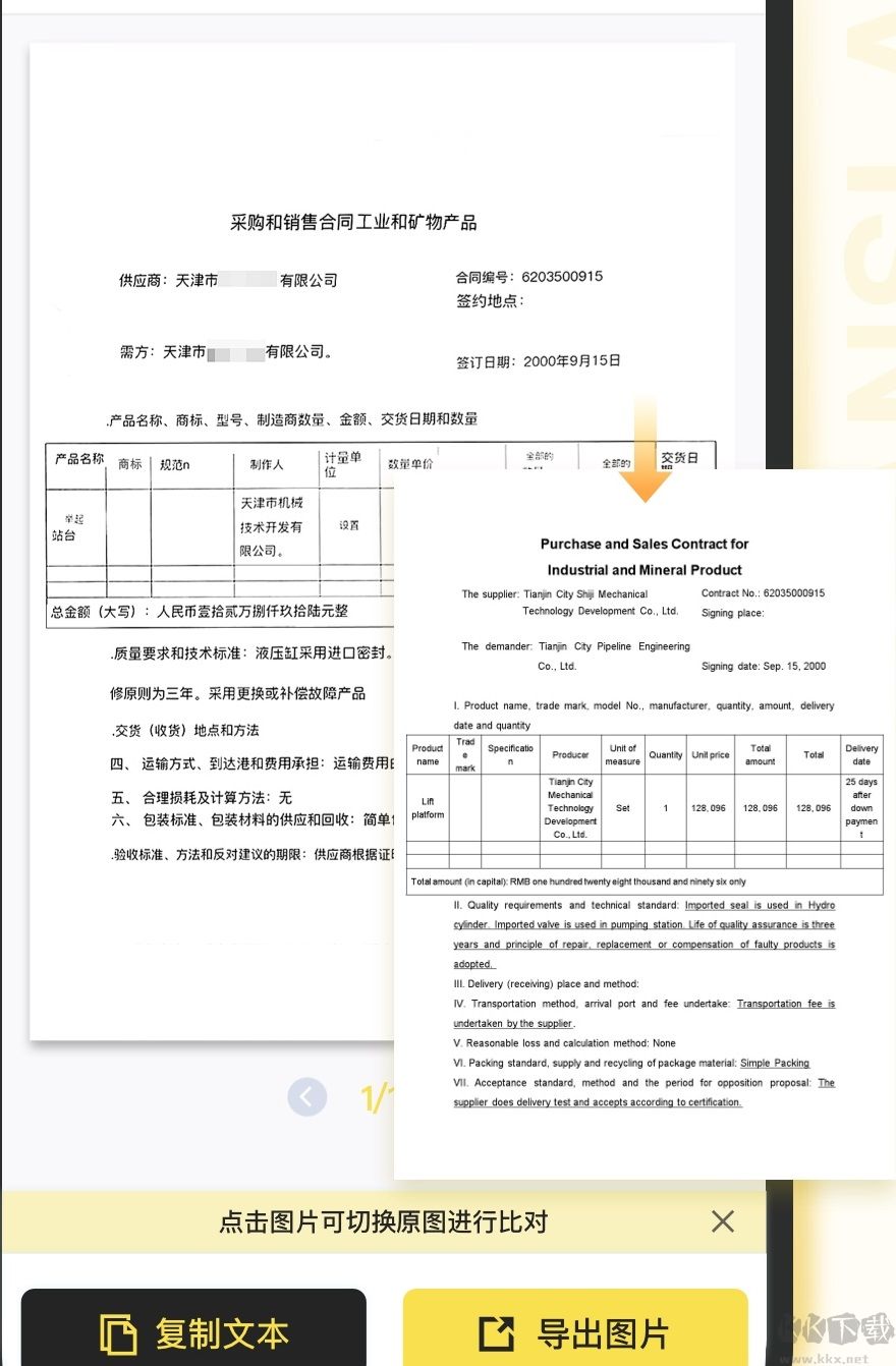 用户只需对文件拍照,即可实现中文与英文之间的相互翻译转换;
