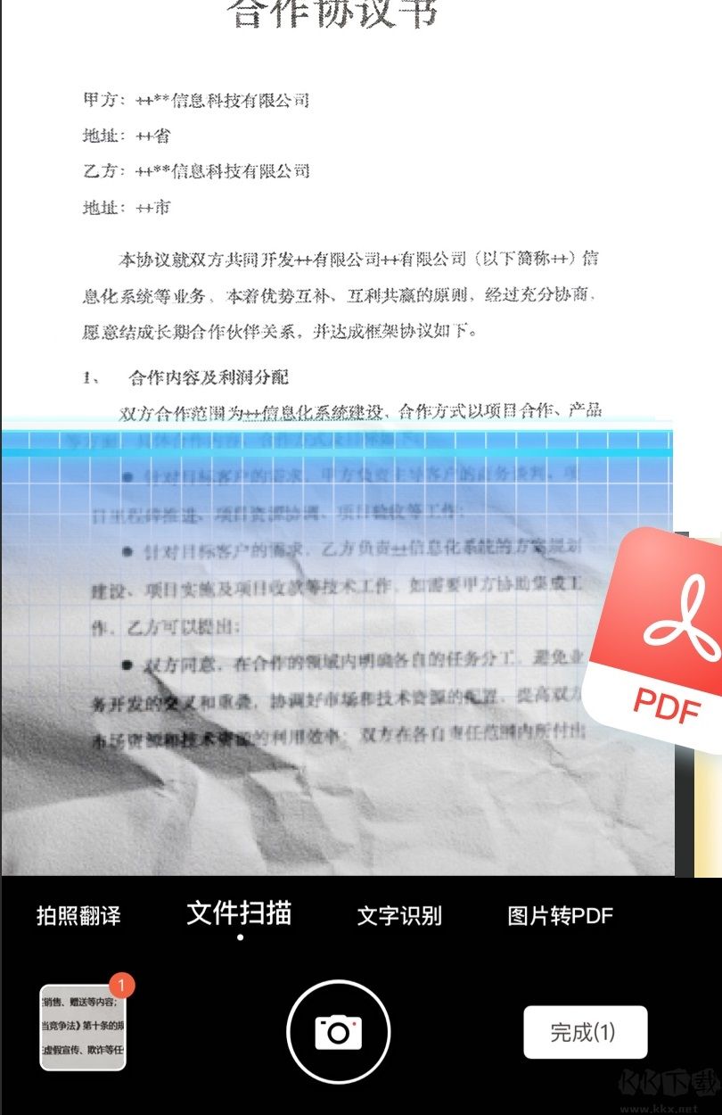 合同或纸质稿一秒转PDF文件