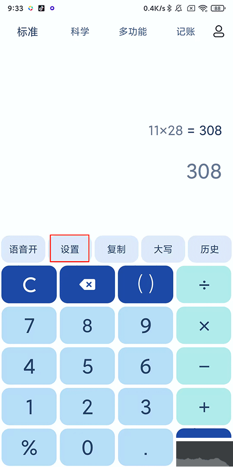 2、在设置中可以调整设置语音报数、按键振动,还可以进行皮肤管理、自定义函数、算法管理...
