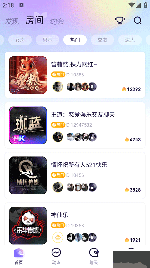 多样语音房间玩法,CD级高保真音质,宝藏歌手倾情献唱,男神女神趣味连麦,轻松遇见心动的TA!