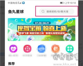 1、打开鱼丸星球,如下图,看到搜索昵称/ID/聊天室。