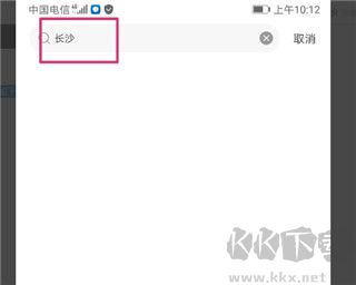 2、点击搜索昵称/ID/聊天室,如下图,输入长沙,看到搜索。