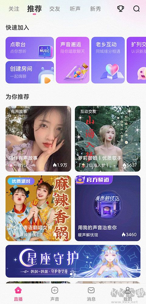 【娱乐直播】汇聚歌手、声优、电台主播等各路才艺达人,精彩内容轮番上演,总有你喜欢的那一款!