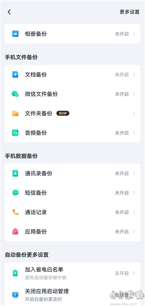 3、在这里,大家可以按自己所需开启和关闭相关备份。