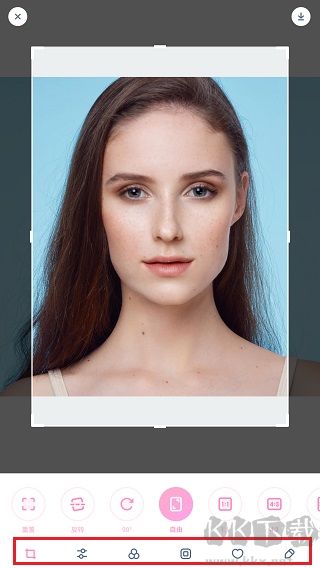 2、进入编辑页面,可以对图片进行剪裁、添加滤镜、贴纸、边框等