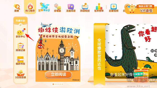 1、打开叫叫绘本APP,在首页点击家长中心;