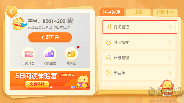 2、点击账户管理-订阅管理,可以在里面关闭自动续费或连续包月服务。