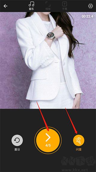 3、用户可以点击开始进行视频制作,可以点击旁边的闪变添加转场效果,也可以用户可以点击上方的音乐添加音乐背景